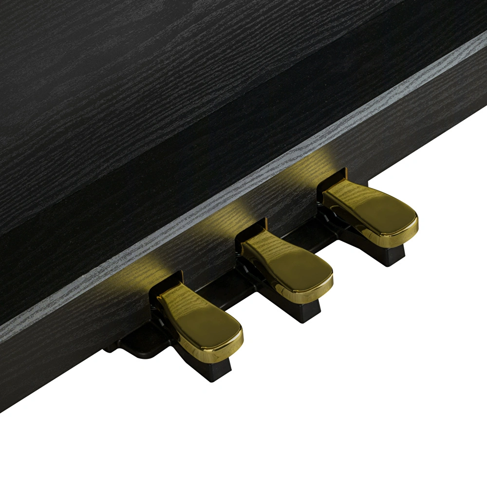 Akustik piyano çalımının vazgeçilmezlerinden olan üçlü pedal sistemi, KHP-165’te de yer alır. Soft, Sostenuto ve Sustain pedalları, damper pedalındaki yarım pedal özellikleriyle tüm piyano tekniklerini kusursuzca uygulamanıza imkan tanır. Bu sayede gerçek bir akustik piyano çalıyormuş hissi ile akustik piyanolardan gelen tanıdık pedal deneyiminizi sürdürürsünüz.