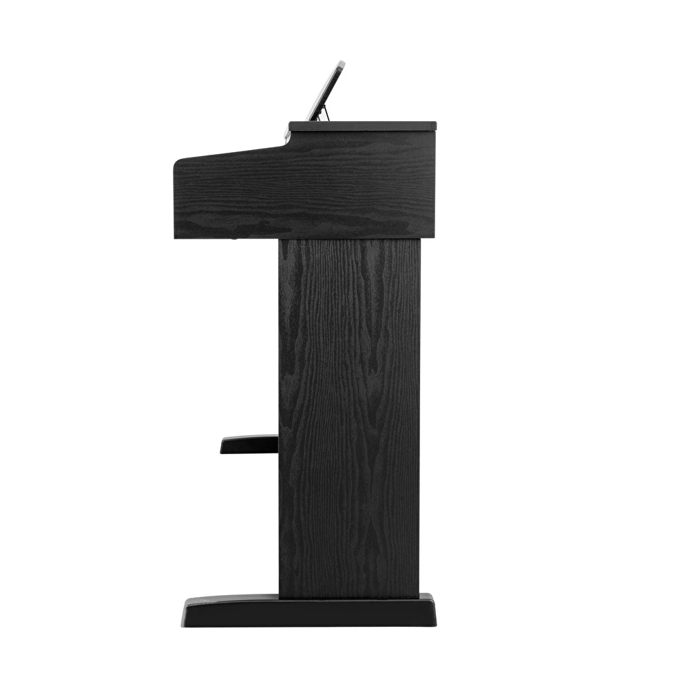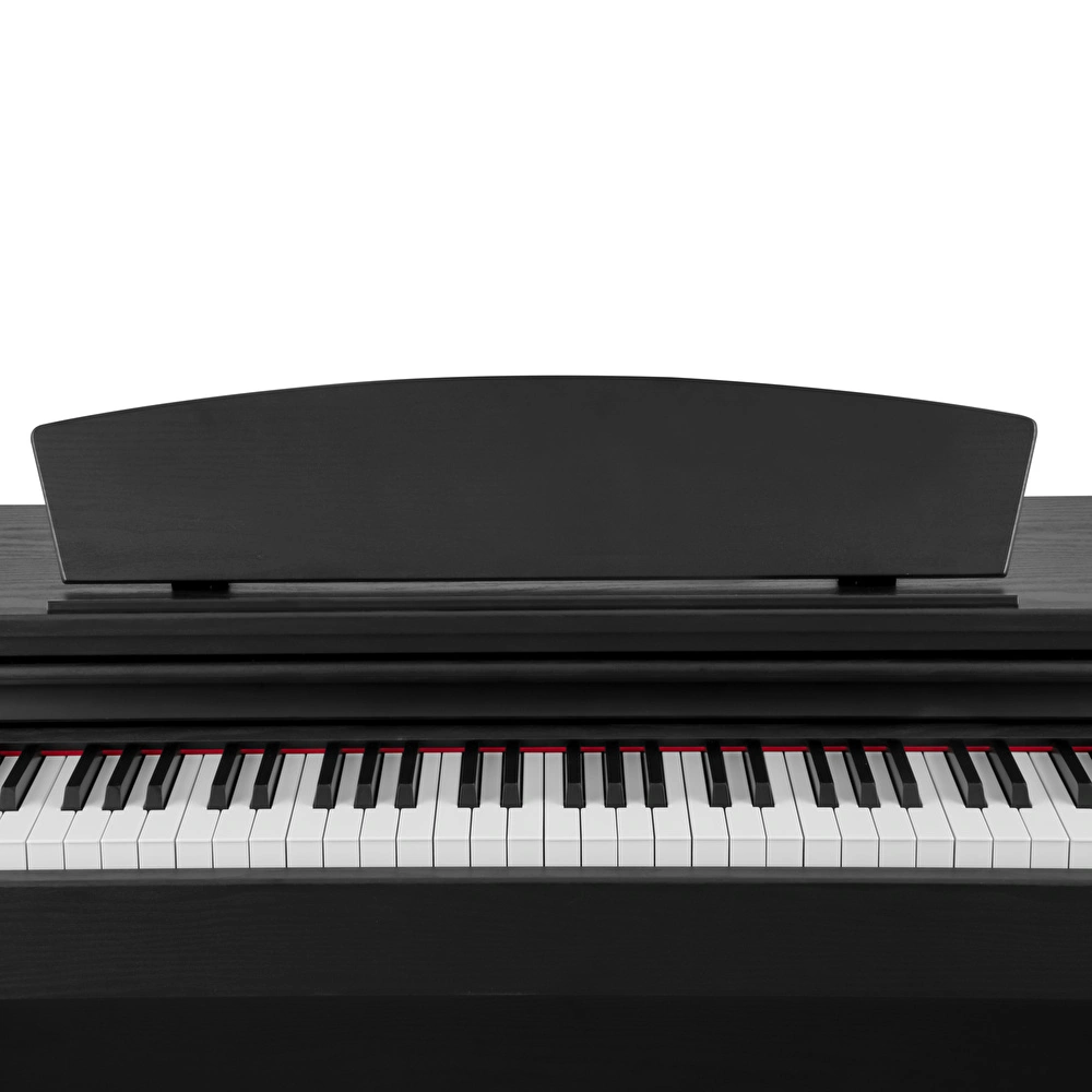 Kozmos KHP-165, zarif ve çekici kabin tasarımı ile estetiği ve işlevselliği bir araya getirir. Yumuşak kavisli yan kolları ve sağlam ahşap ayak blokları, piyanoya ekstra stabilite kazandırırken zarif bir görünüm sunar. Geri çekilebilir tuş kapağı, klavyeyi tozdan koruyarak piyanonuzu her zaman çalma hazır tutar. Geniş nota sehpası, kullanımda değilken düz bir şekilde katlanarak yer tasarrufu sağlar.